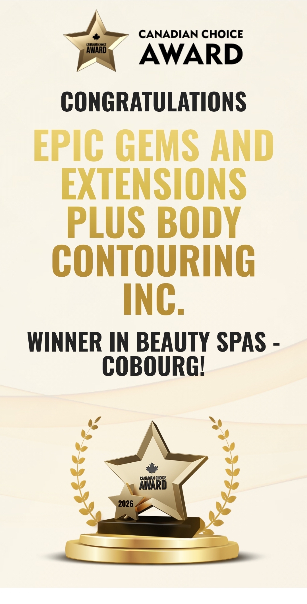 - 2nd Overall Service – Health/Wellness/Fitness/Beauty – Epic Gems and Extensions Plus Body Contouring